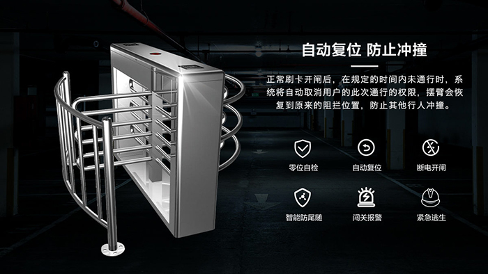 1、采用獨(dú)特的人工轉(zhuǎn)動閘桿與自動復(fù)位,自動鎖定及解鎖機(jī)構(gòu)相結(jié)合的傳動系統(tǒng),使得十字轉(zhuǎn)門的運(yùn)行更加安全,可靠,便利;