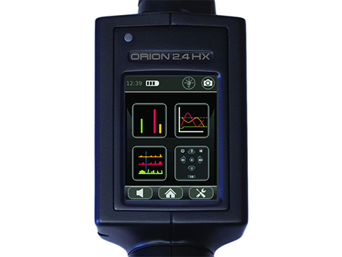 全新的聚碳酸酯機(jī)身上裝有一個觸摸屏顯示器。ORION 2.4是手持式,縮回時機(jī)身比較小巧,伸開時總長度可達(dá)58英寸,足以能夠?qū)﹄y以到達(dá)的區(qū)域進(jìn)行探測。LED/ OLED視線顯示屏可以任何長度為用戶提供視覺反饋。