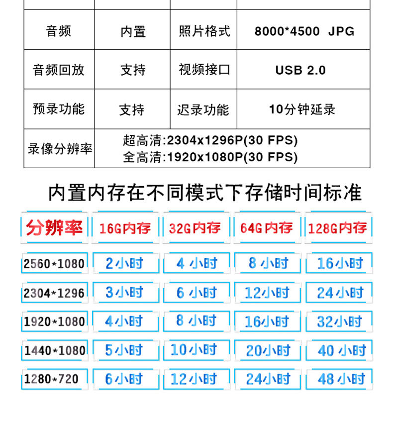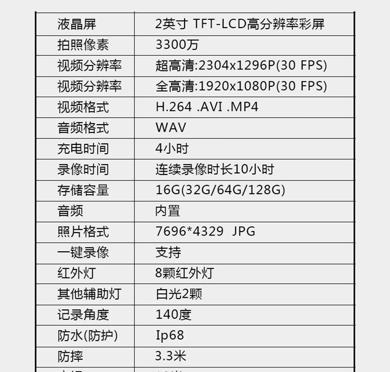 7.電池:設(shè)備采用內(nèi)置不可更換電池,設(shè)備連續(xù)錄像≥8.6小時(shí)。