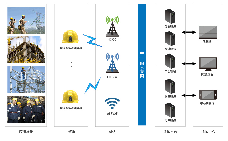 帽式智能視頻終端采用高速處理器,集高清視頻、音頻、4G和WiFi無線通訊、定位、存儲、報警模塊于安全帽內(nèi)。通過4G、WiFi無線網(wǎng)絡(luò)實時音視頻信息傳輸、語音對講,可實時記錄現(xiàn)場情況、收集證據(jù)并遠(yuǎn)程指導(dǎo)維修施工等。產(chǎn)品可廣泛應(yīng)用于電力巡檢、工地巡查、鐵塔作業(yè)、爆破監(jiān)管、搶險救災(zāi)及檢修遠(yuǎn)程指導(dǎo)等場景。